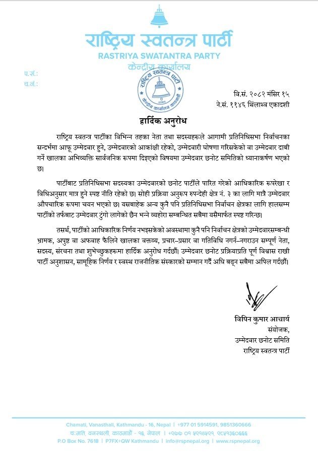 • रास्वपाले भर्खरै जारि गर्यो यस्तो विज्ञप्ति