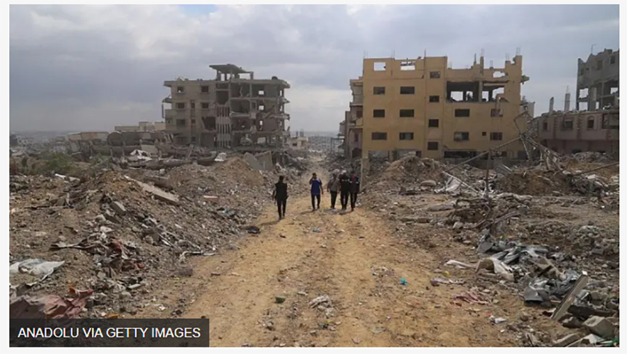 उक्त पहेँलो रेखा इजरायल र गाजाबीचको सीमा हो, जसलाई इजरायलले आफ्नो नियन्त्रण क्षेत्र मानेको छ।