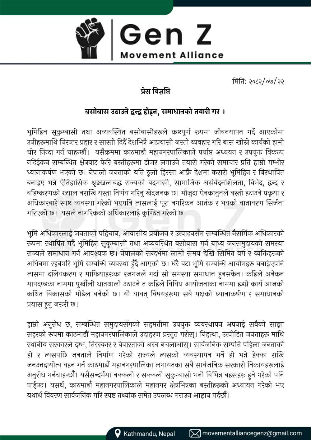 सुकुमबासी बस्तीमा डोजर नचलाउन चेतावनी